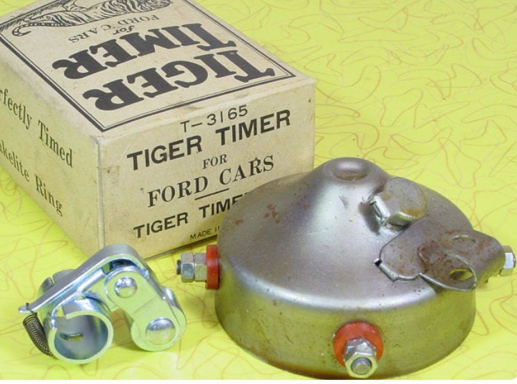 That timer case is the rather common 'Tiger' timer, made as repo for many years, its like a Ford roller, but cheaper case. The bent over tab has hole to retain the timer rod. But in this T, the repair guy cheated and just slipped the rod into the loop.