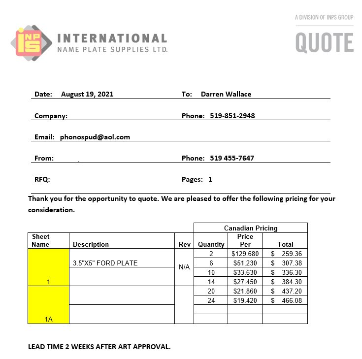 This was the quote I received when I thought I was only doing 14 plates. I'm still waiting for pricing for 24 plates. Hopefully, it will be a little cheaper than what you see here. I will post the FINAL pricing quote as soon as I know it. Once I get the final quote, then they will email me the artwork for approval. I will post that here so EVERYONE can see what the plates will look like.