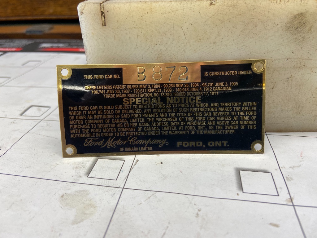 Attention Canadian, Australian, UK 1912-13 T owners re: large ID plate