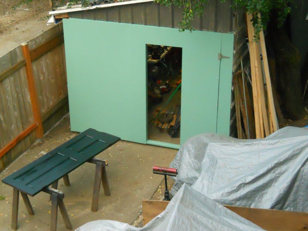 Garage/work space getting new door. Got to find a place for the sign, it's almost as long as the T.