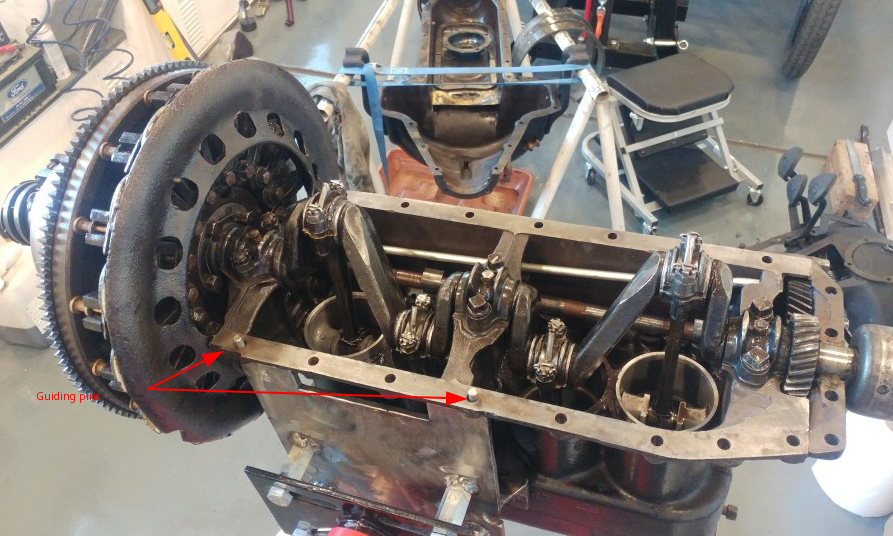 Hope that bolts are long enough to allow this additional 2 mm below oil pan. Nuts seem to be locking nuts. (They look like crown nuts.) But the engine is a 1916 one when looking for the serial number. So this bolts&nuts have been replaced some time ago.