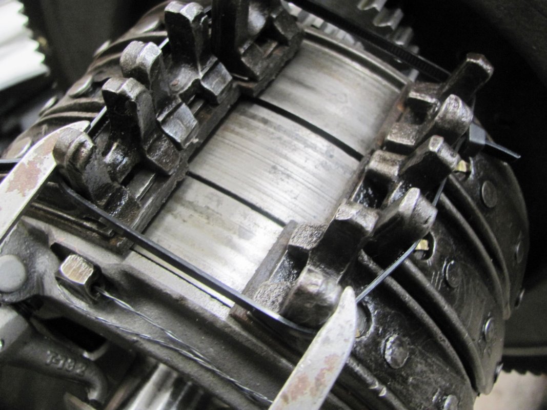 I finally decided on wood bands for my 1918 engine, which does NOT have detachable ears on the bands. I read some wonderful posts on drilling the countersunk holes, but one thing eludes me........assuming you drill from the outside of the band first, then finish drilling and countersink from the inside how in the world does the drill press spindle work INSIDE the band?