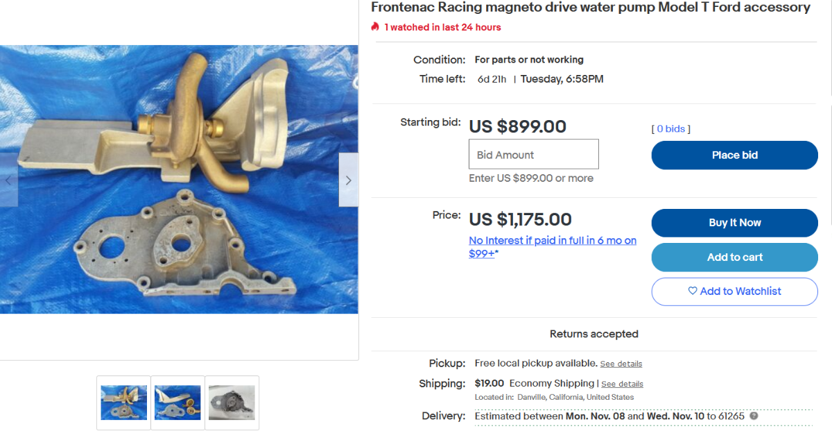 My '23 TT has a water pump that was put there by the previous owner/rebuilder. It will pump a lot of water. You can look inside the cap and see the water gushing into the top tank of the radiator even at idle. It has a new radiator and is over heating. Guess what? The rebuilder didn't clean the rust out of the block and head and the water pump forced all these rust chunks into the top of the radiator blocking the tubes. I need to back flush and see it that will force the junk out. If not, I'll have to take it to a radiator shop and have it rodded out. Bummer.