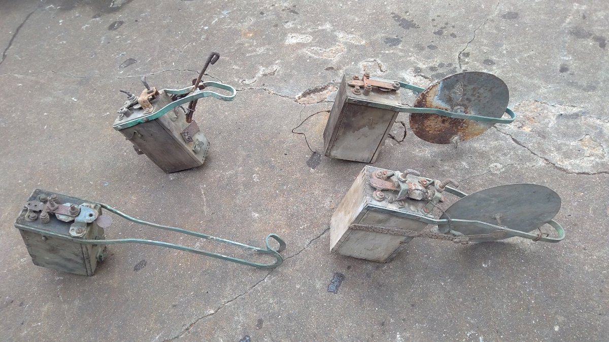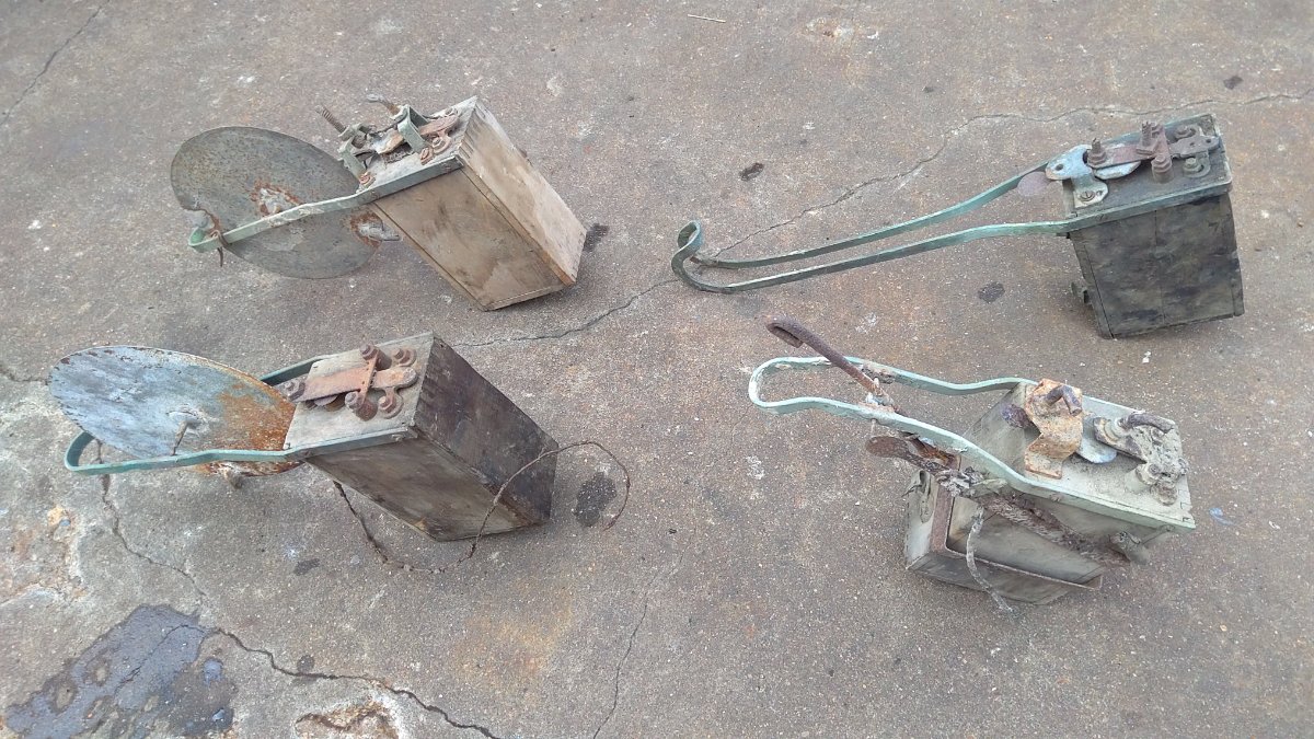 I am familiar with electric fence kit with the glass tube on them. I have a couple of them. But have any of you guys seen any home made primitive fencers like this? Was this the individuals idea that come up with this. Or was it a plan out of poplar mechanics magazine? The two with the wheel, I can almost see how it would have worked. It would kick back and forth in its rotation. One has a kind of see-saw effect where it would just go back and forth. The other one with the curve that goes up, looks to be missing some parts. I have no idea how it might work. I would like to make some of them work if any way possible.