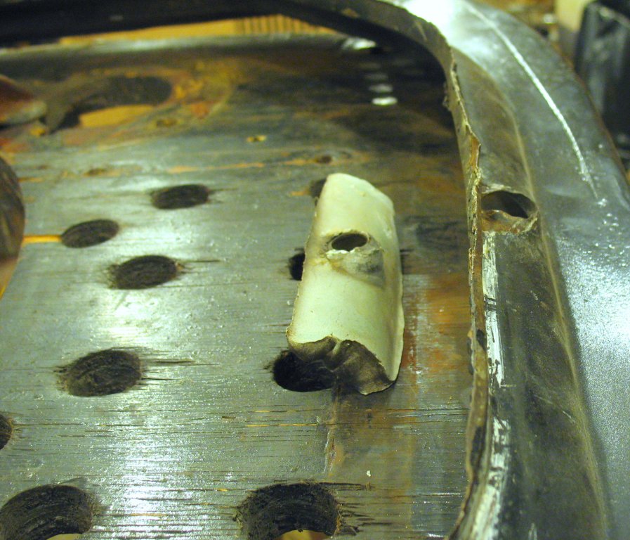 If I just repair the hole it will wallow out again. I believe I'll braze in a piece of tubing to support the hood rod.