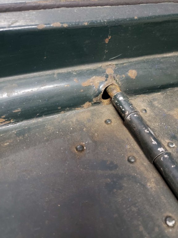 David's piece of tubing is a good idea to spread the load at the former. However, if the former hole is flogged out, it is usually reflective of the hinge rod needing to be in a position somewhat less than central to the original hole. The hood will fit better if you can allow the hinge rod to sit where it wants to sit. Be prepared to weld the bit of tubing to the side a bit so the hood fits as best it can. On the earlier flat firewalls, the whole hood former can be fitted off centre to achieve the same relaxed fit.