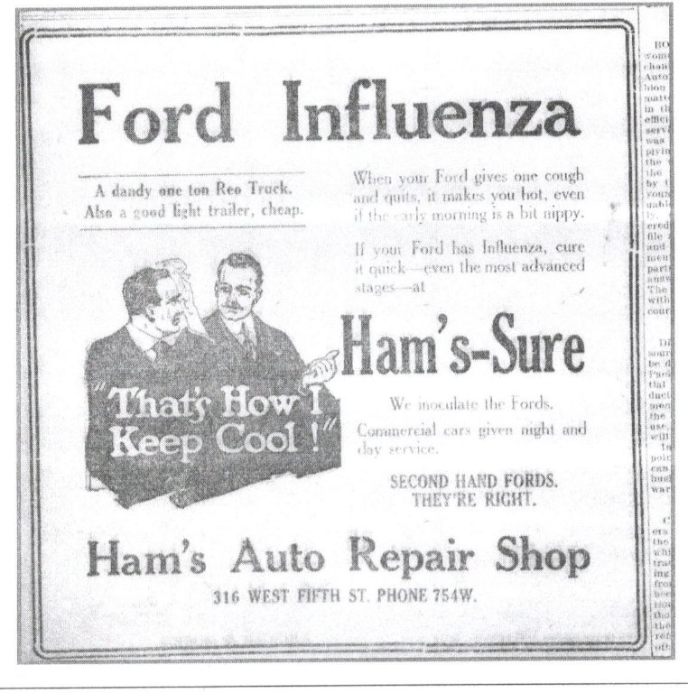 The during the epidemic in 1918, The virus could be use in selling Ford Cars...