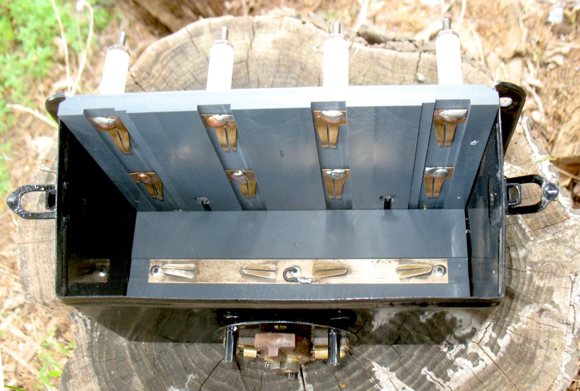 Replaced last year a so-called redone old wood panels in this coil box, some one cleaned and varnished it, so it looked good, but was cracked and I just don't trust old wood trying to prevent 10k volt outputs from my coils