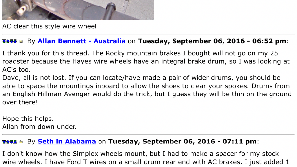 Keith: Saw a speedster at a show few weeks ago that had Hayes wires and small drum brakes like AC. Worked fine. I am going to try mine soon.