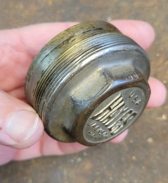 The correct caps have external threads. The repops were cast brass, not sure about the originals...