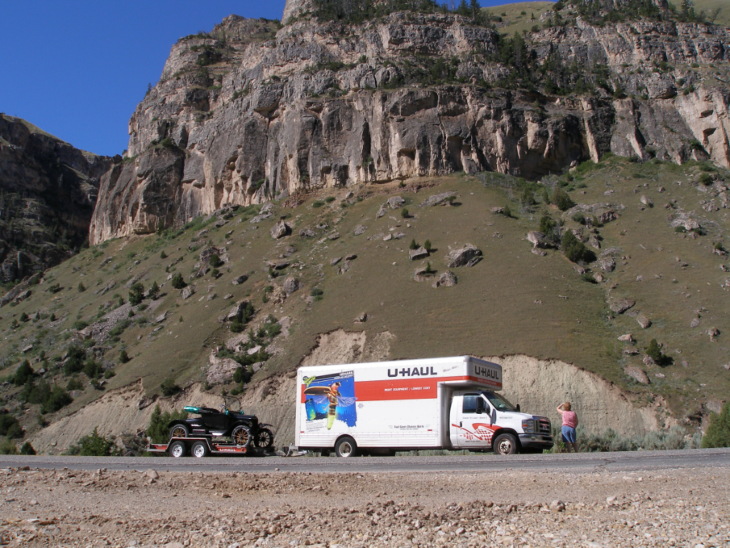 No law says you have to drive 70 mph. I have always used an open trailer, and I have observed my own 55 mph speed limit. The transported T has always arrived unscathed, and my gas hog Suburban has escaped descending into single-digit gas mileage.