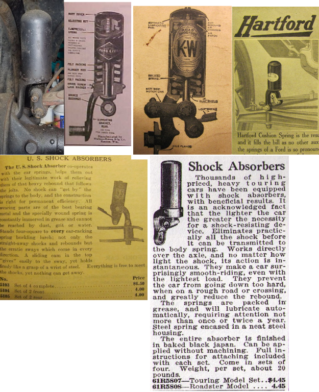 This style shock absorber was manufactured and/or sold under a dozen names. They are probably okay to use on the rear of a model T. HOWEVER, - - - - NEVER - - NEVER - - EVER use that style on the front of a model T !!!!!!