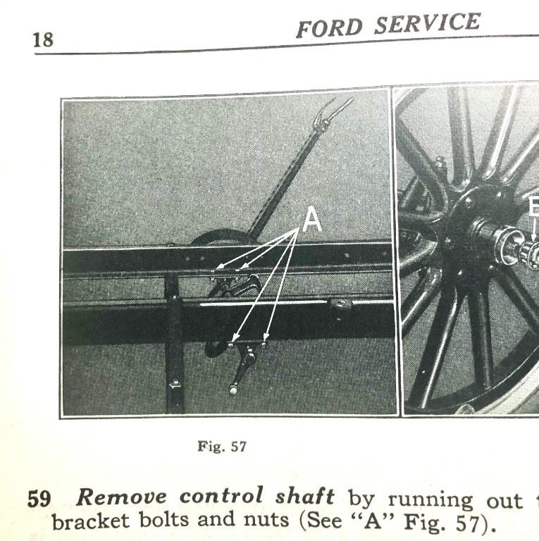 You can refer easily to Ford Service, paragraph 59 to remove and paragraph 67 to install that control shaft.