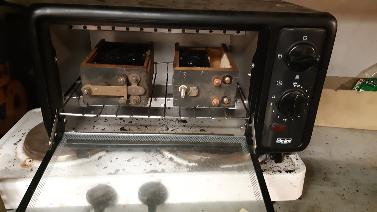I have bought a cheap tabletop oven/toaster and give them 5 minuttes with just the upper heating device switch on:
