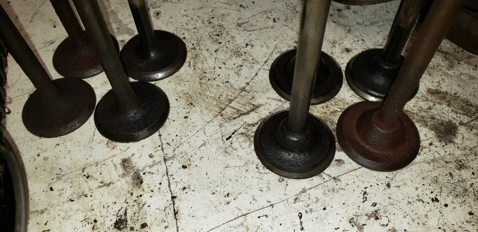 Yup. Two piece valves. And, by the looks of most of them, they weren't really doing much anymore, except just going up & down. The engine photo also makes it appear as if the seats have been cut waaaaaay deep. Time for inserts I think, and new valves too of course.