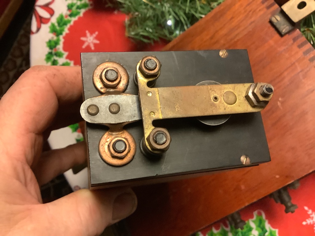 The craftsmanship of the box looks to good to be a survivor or even a restoration. The switch mechanism is the same used in the 1914-22 boxes with a different backing plate. The dovetails on the coil unit and box are different size than that of older coil unit pictures. Many of the old coil units were dovetailed top & bottom not the sides. The thickness of the black top plate is also much thicker than those in the old pictures as well.