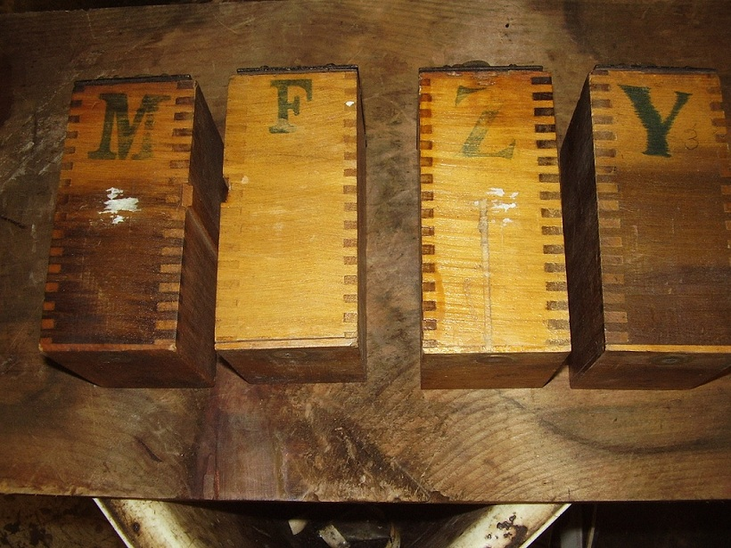 Inside wood dividers have shrunk enough to slide in and out easily. Poplar wood, shows patina even from being inside the case forever. Sometimes referred to as “air burn” Note stain just on the top edge where it would be noticed.