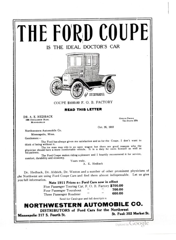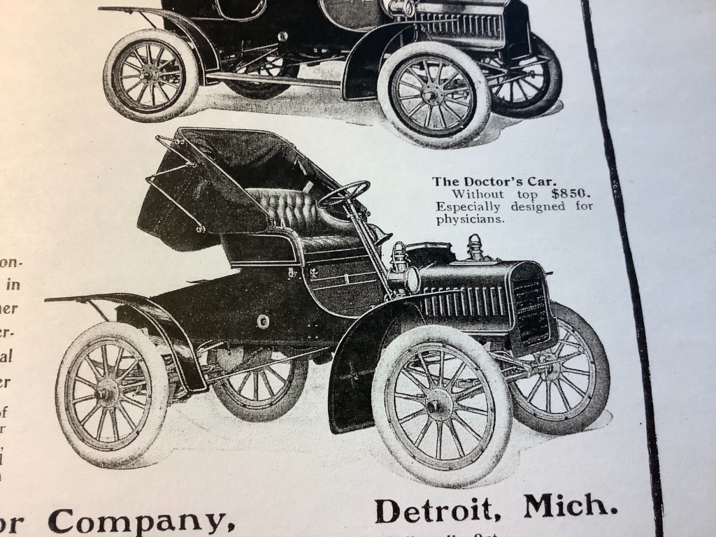 This is a challenge. Maybe another Ford First. Show an earlier manufacturer advertisement for a doctors car. Here is FoMoCo
