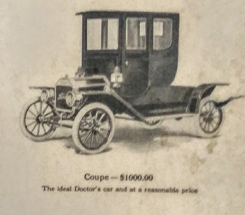 So by 1910 there is evidence that the Ford Coupe is indeed a doctors coupe. It took ten years since the introduction of the De Dion Bouton Cab (Coupe Doctor) from 1900. Medical Journals carrying advertisements of Automobile shows in 1910 and advertisements with testimony that the Ford Coupe is satisfying for a doctor on his/her rounds.