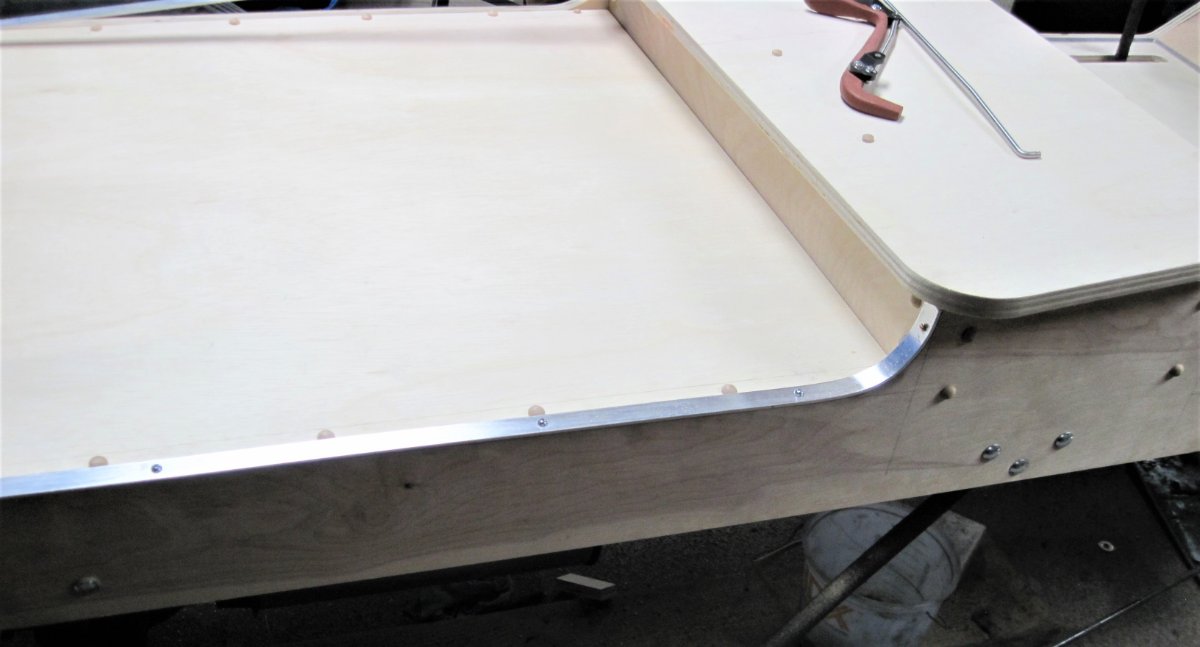I'm gluing the long side rails together as they are made of two lengths of 3/4" ply, any trim is mounted on one piece overlapping another so a seam is covered but trim can shift over it, I'll start another thread about building, "Speedster- building"