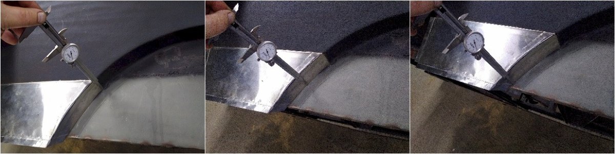 What I don't know is the taper along the wheel well edge. How far do I need to cut this thing back before I weld? I put calipers there to give an idea of what I am requesting help for.