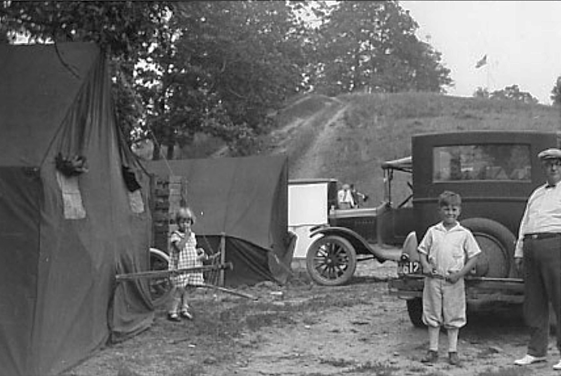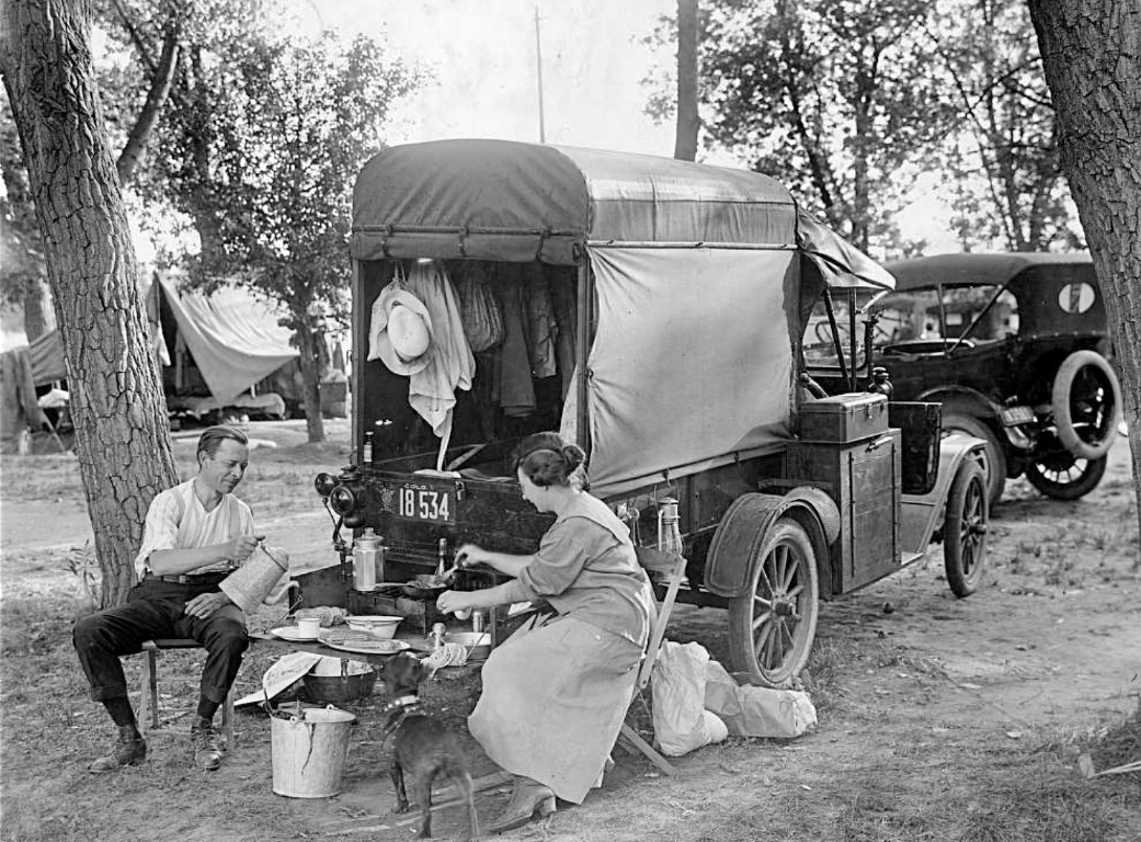 I believe that "auto camping" was very popular at one time. Also, people traveling any distance in many parts of the country had to carry their own supplies, or do without. Accomodations were scarce in many areas.