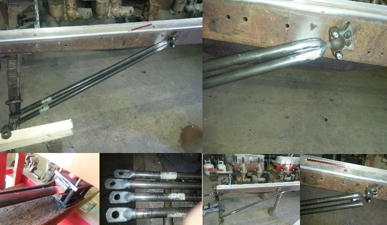 Still very rough, but mine was lowered with a bracket fabricated in front of the radiator for a spring perch. Wishbone lengthened to accommodate. Have not had time to see how the rear was lowered, but I can see some odd turnbuckle mechanism though the trunk.
