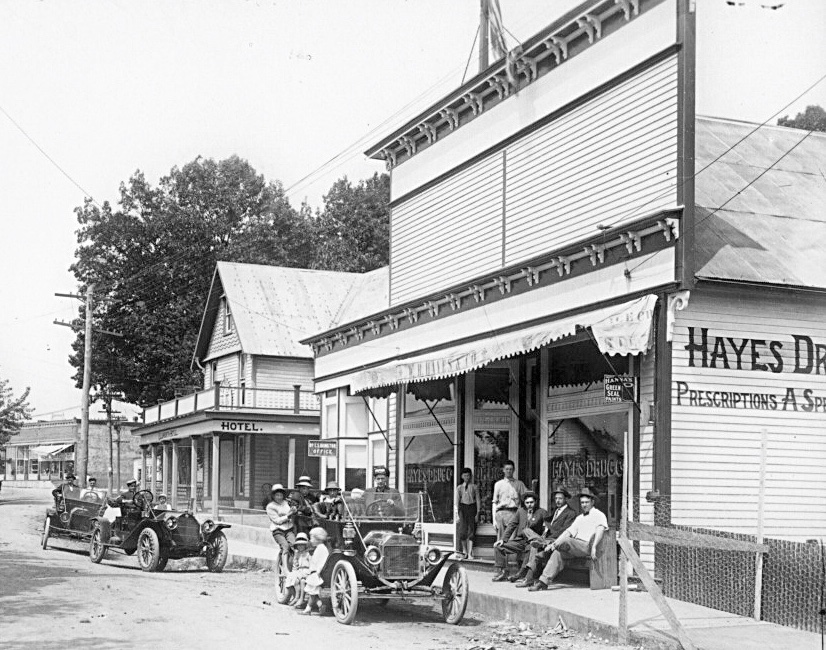 notice two buildings on the left