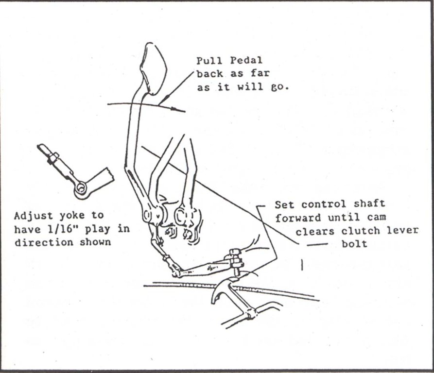2. Take up slop in yoke-to-pedal connection by pushing yoke towards the front of car (or towards the pedal if you will).