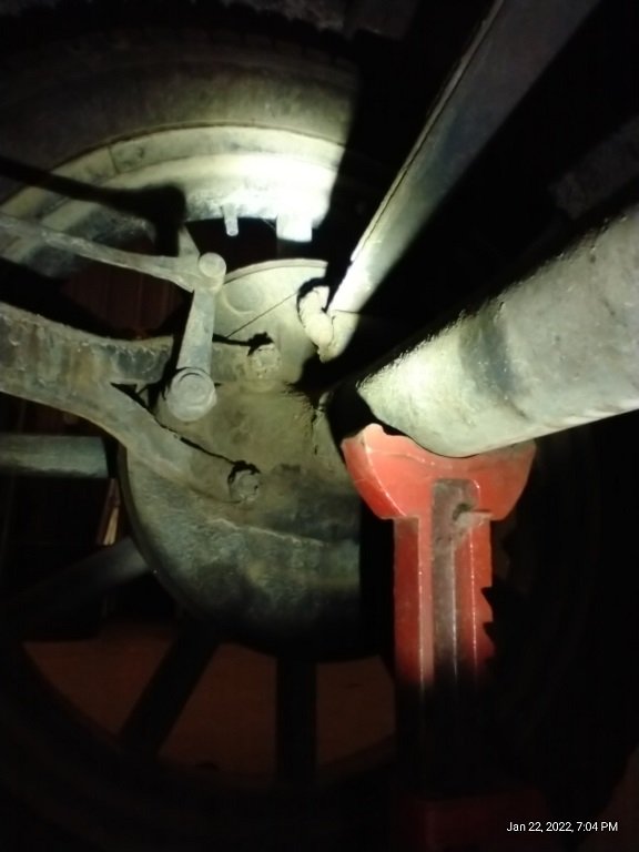 Can't seem to make no progress, lol. Wanted to check the drums/shoes, started with the driver's side, I don't think this wheel has ever been off! My largest puller grabbing 3/8" thick metal plates placed behind the spokes. Torqued down and pounded on repeatedly. Also thrown heat and penetrating oil at it. May have to wait and try the drive-around trick once I get the motor back together.