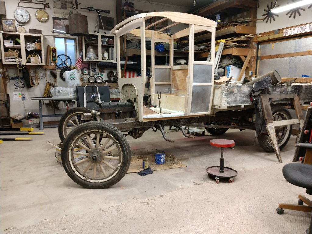 The body you are rebuilding is probably one of the earliest survivors, and really an incredible vehicle. We know of a 1917 Parry body, of a different design ( a station wagon) that is getting restored right now.