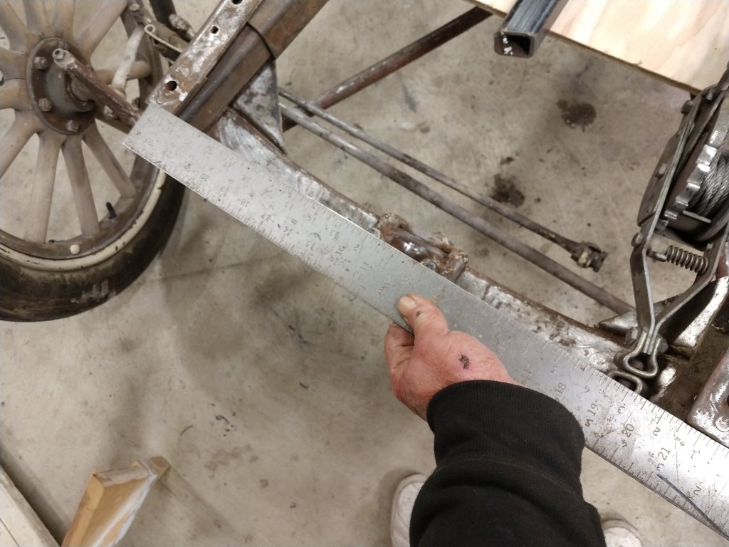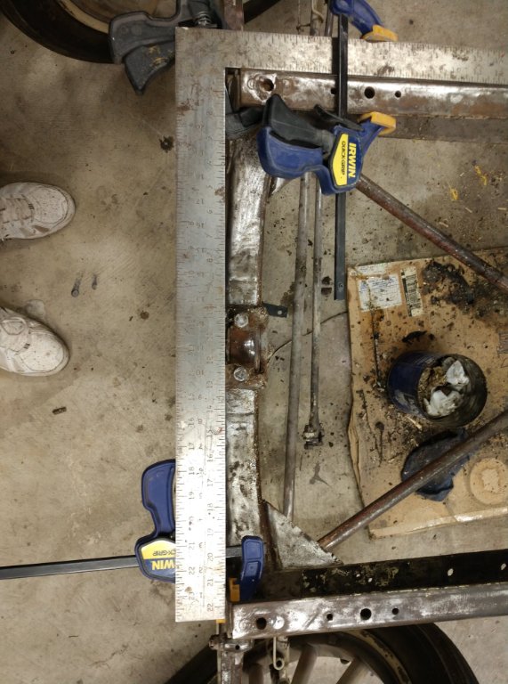 Thanks guys. So this frame took a pretty good hit at some point in time. I had to bring the passenger side forward just over an inch. It took all of the 20 tons this jack could muster but it got it done.