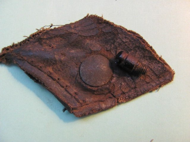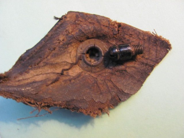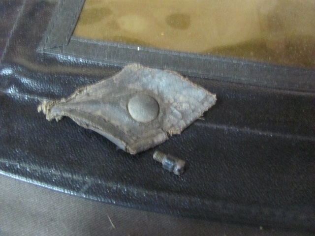 Those pieces are the male portion of an ANZO fastener, (also known in the old time trade as 'glove' fasteners) those were used on the earlier Model T side curtains, that threaded post is placed in the top iron, and the fabric received a split like cup as the curtain retainer. Used on the 1923 One Man tops until the Improved Car in 1926.