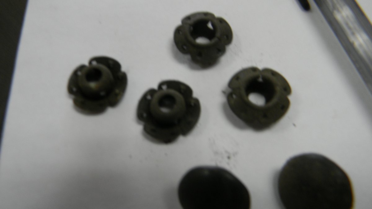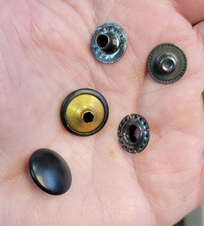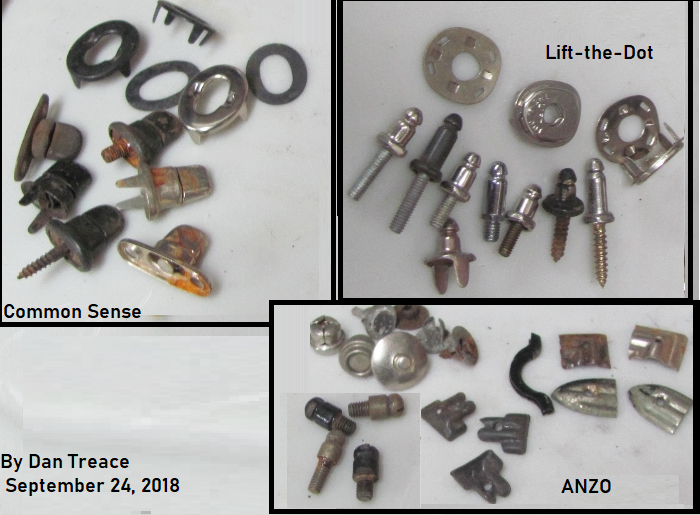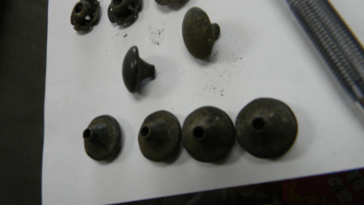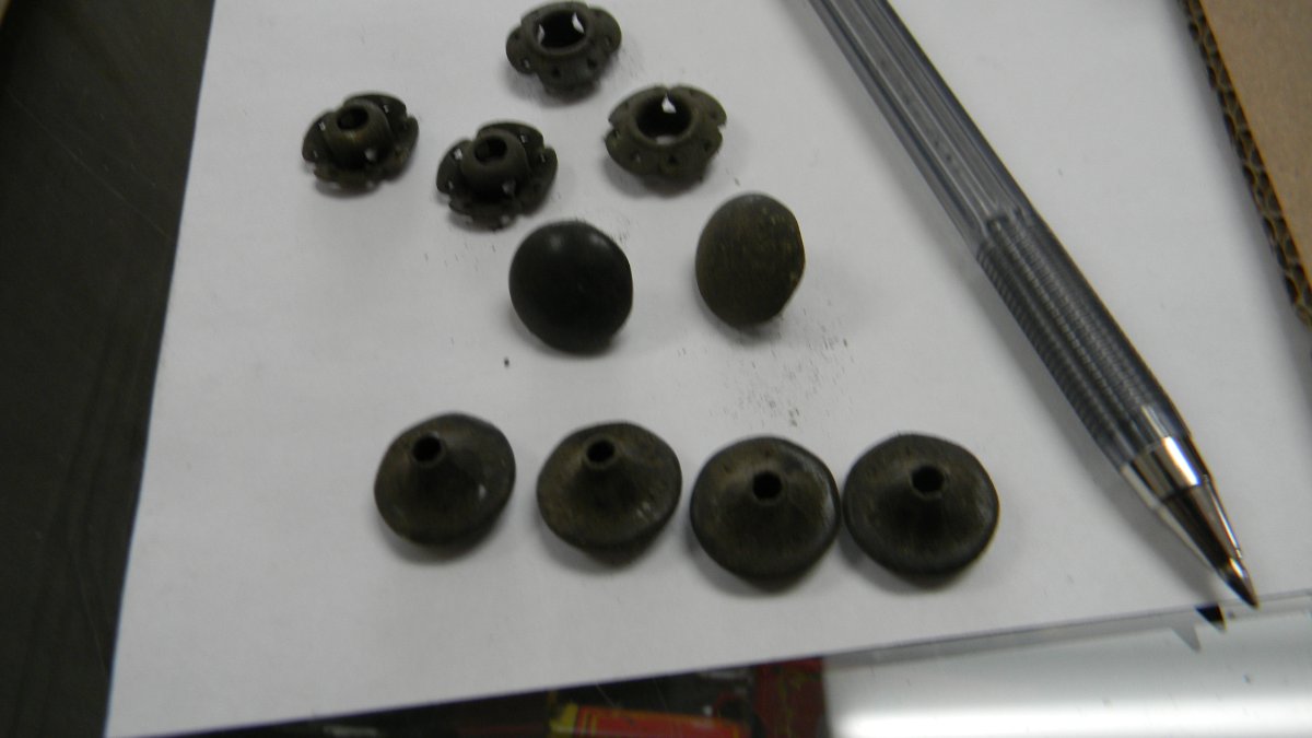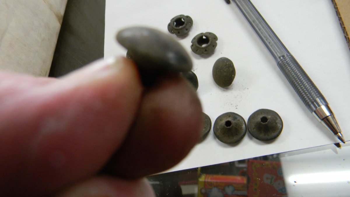 Going through some more boxes and ran across these small odd shape looks like buttons but have odd shape and hole in other side, also some odd fastners , any ideas??? Bob