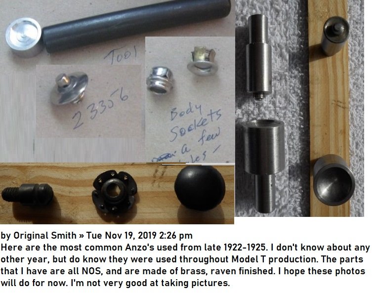 Those are indeed Anzo fasteners. When I restored my 1925, I went to a lot of trouble to find those, which are correct for many years of T's. I even had a special setting tool made to use.