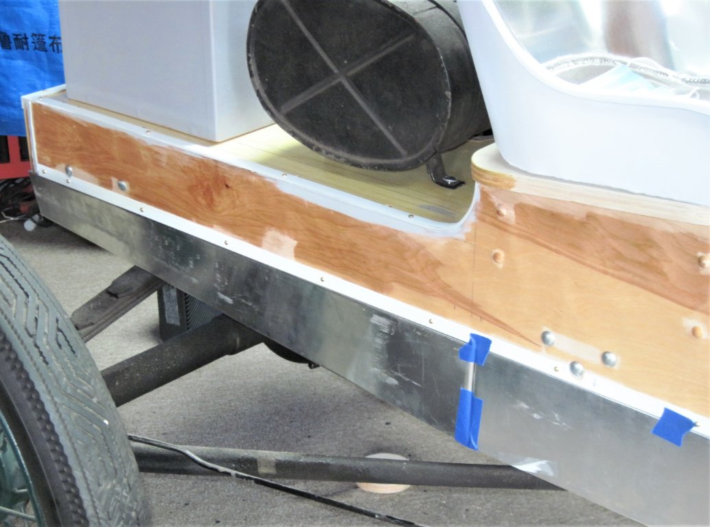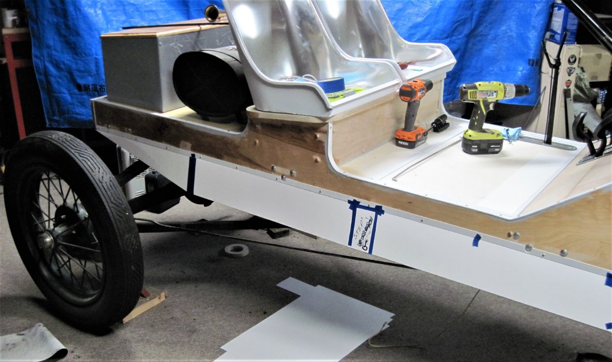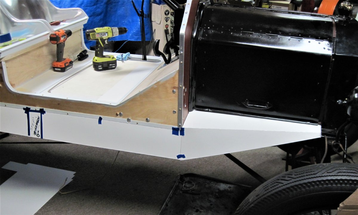 This afternoons work, make the aluminum skirts and hood shelves, not attached but held on with tape until I get some fasteners.