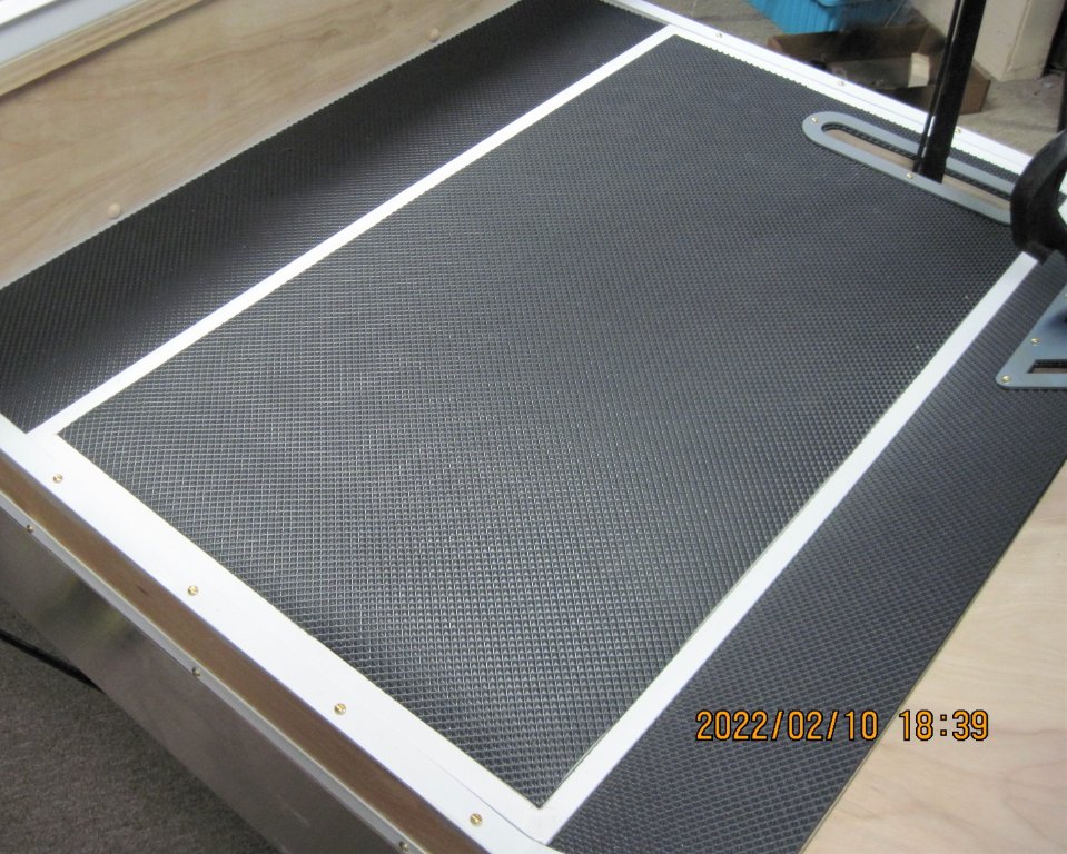 Today my floor/deck covering came, I'm happy, correct size pyramids, automotive cert (oil resistant and fire resistant.) at a price I thought was great $5 linear foot 3 foot wide I purchased 8 foot just in case ($40), then I found my NOS tail light. I went with black as I don't want to look at a white floor in the sun, the white aluminum trim is in primer and will be grey like the pedal trim.