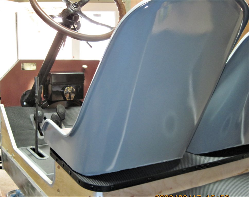 As of today I'm thinking light grey for the body (as little as it is), gas tank, tool box, steering column, hood, hood former, radiator and seat backs with black pleated canvas upholstery, black wheels, chassis and step.