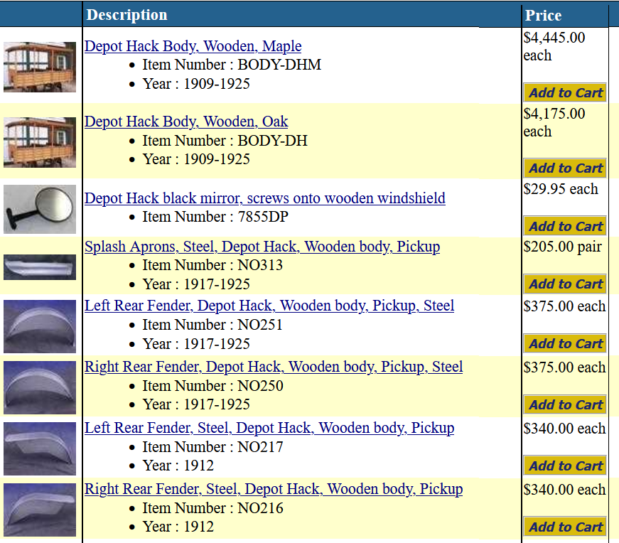 Regardless, have pictures and an explanation of how the prices were arrived at to keep family harmony. For example a reproduction Depot Hack body is going for quite a bit (see below). Realistically your body is not "new", even though it was not used it has poly coat and even you have noted it could be stripped down and redone. However, if the patina gives it character why do that.