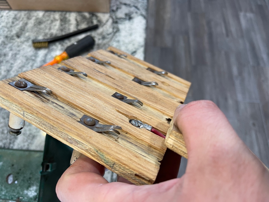Before you reassemble the switch turn the tabs red (not hot enough to melt) and let them cool so they won't break off when you bend them down.