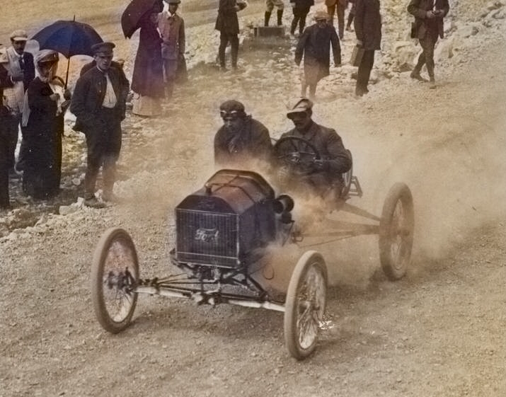 This 1911 photo shows one of the Ford Specials on a hill climb in France. I believe the exhaust ports are open: