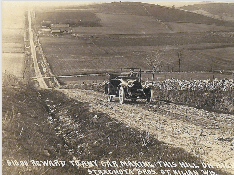 During the teens or twenties, Strachota Brothers General Store in St. Kilian offered a $10 reward to anyone who could climb Katzenburg Hill in high gear. In addition to running a general store, Simon and Andrew Strachota began a business in 1907 buying and selling white Dutch clover seed, which was planted for dairy cattle hay feed. This business became known as Dairyland Seed, and today is a nation-wide seed business specializing in alfalfa, corn and soybean seed production and sales.