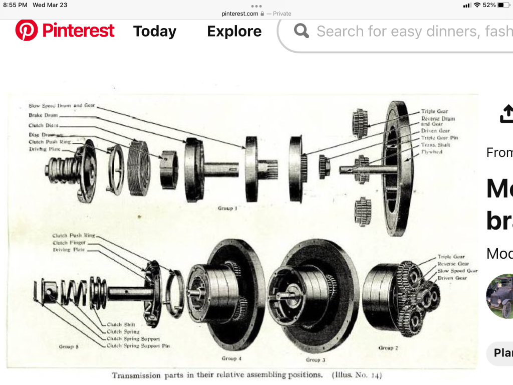 As I mentioned previously, The drive plate 6 bolts must be removed, the center clutch hub pulled, woodruff key removed, Then the center shaft can be slid out & drum pack loose to be lifted off with the trpple gears.Art M wrote: ↑Thu Mar 31, 2022 6:48 pmI would disassemble the transmission. After the transmission is removed from the flywheel, it only requires the driven gear be removed to complete the disassembly This does take a substantial puller.