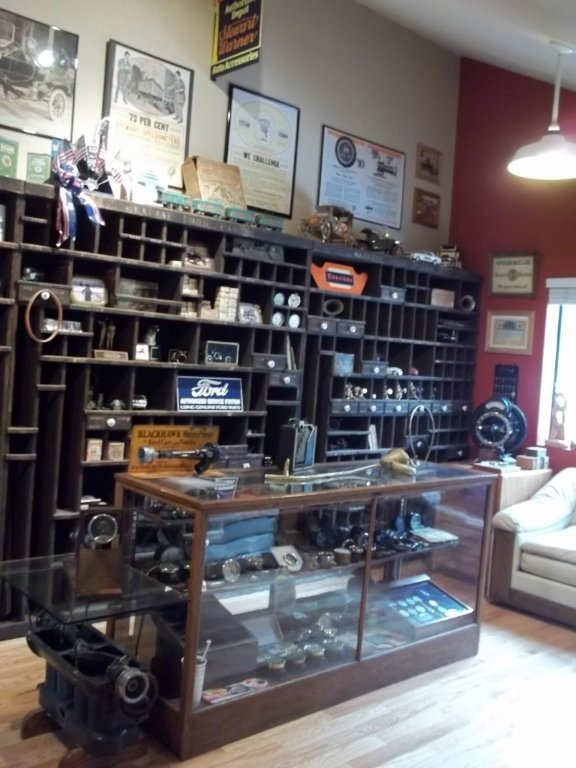 Here are a few pics from my recreated auto parts store - the showcase contains mostly Model T accessory items.
