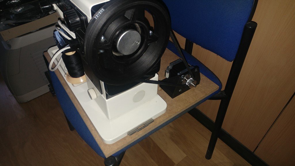 This is my enhanced sewing machine (can still be used as normal sewing machine when taking off the timing belt):