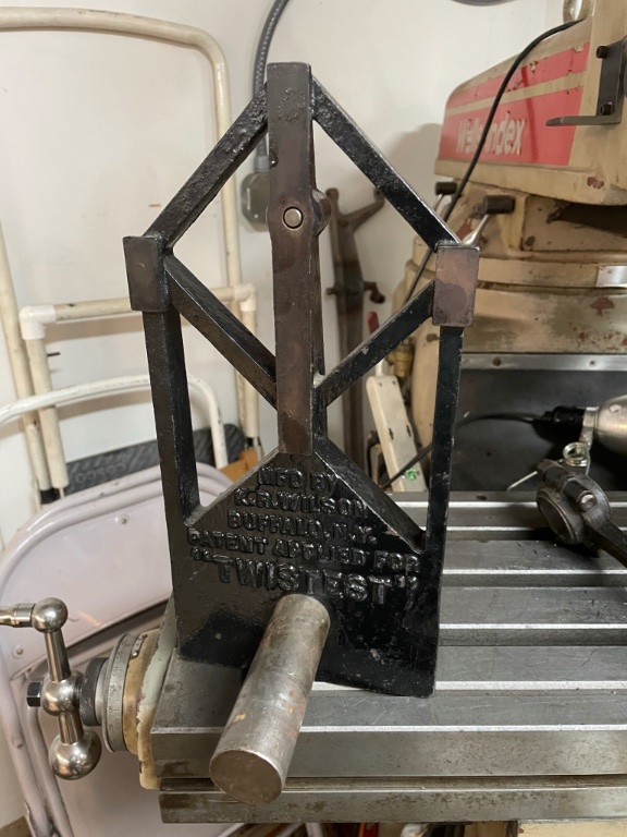 Now it makes sense Donnie. Because my tool is used on a multitude of rods, it is designed to facilitate this. The very substantial vice is used to straighten bent rods, including hefty truck and tractor diesel items. On T rods, I pass another rod through the wrist pin to correct twist.The rod is returned to the square mandrel for checking with the sea lion. It tales a couple of goes with T rods, more so with anything heavier, but I never have occasion to do this.