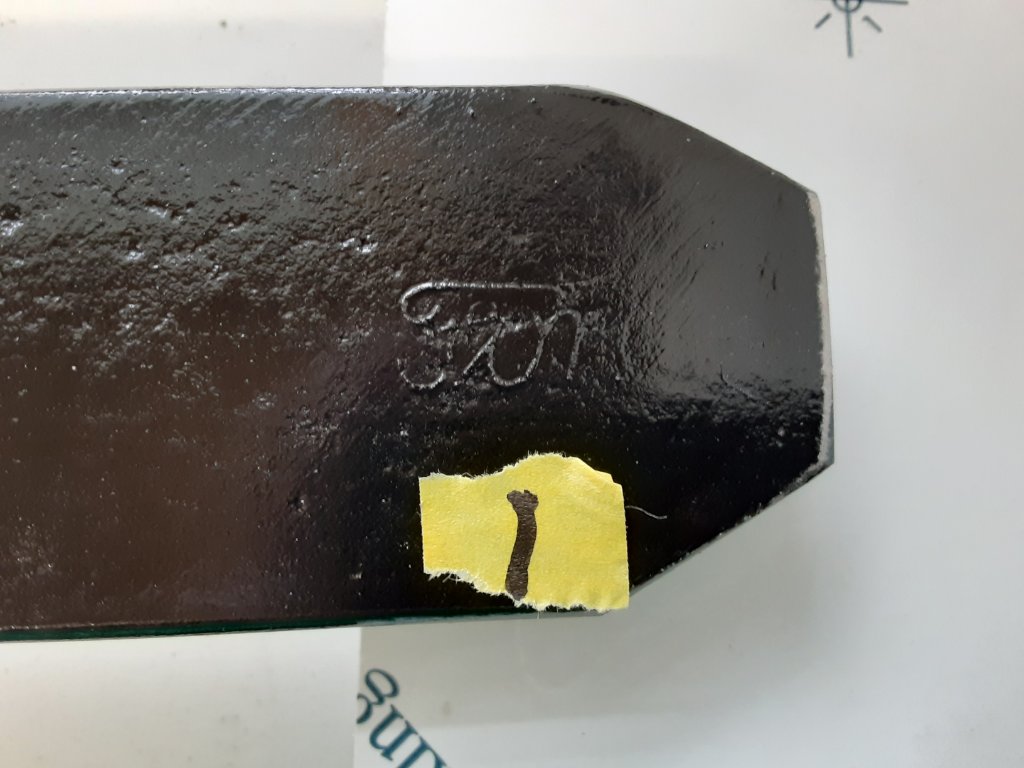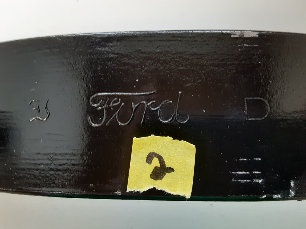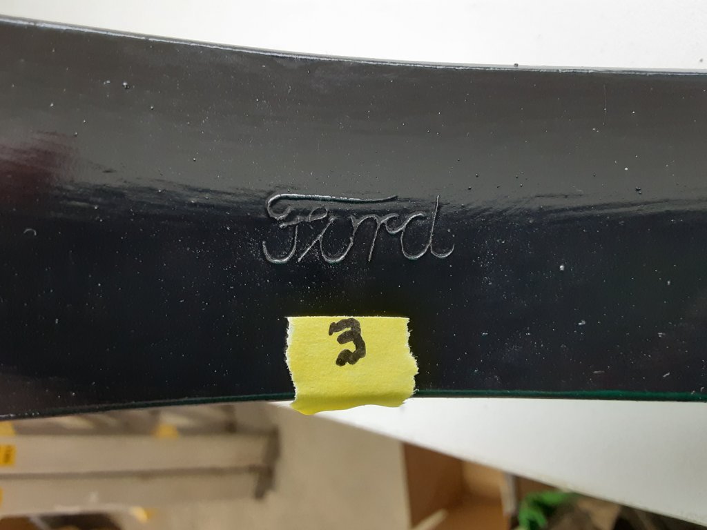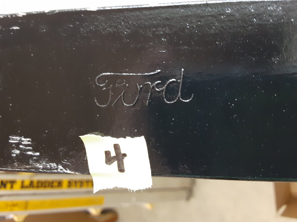The first photo here is a leaf that has four Ford scripts. The locations are shown by the yellow pieces of tape. They are numbered 1 thru 4 from right to left. The next four photos are close-ups of those locations.