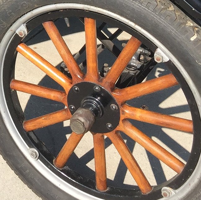 Duh! I messed up in getting a photo. It'll probably be Friday before I can post them. I'm gone tomorrow getting kingpin bushings installed and right now the spokes are masked off so I can paint the hub and felloe of the wheel in question. Great planning, eh?