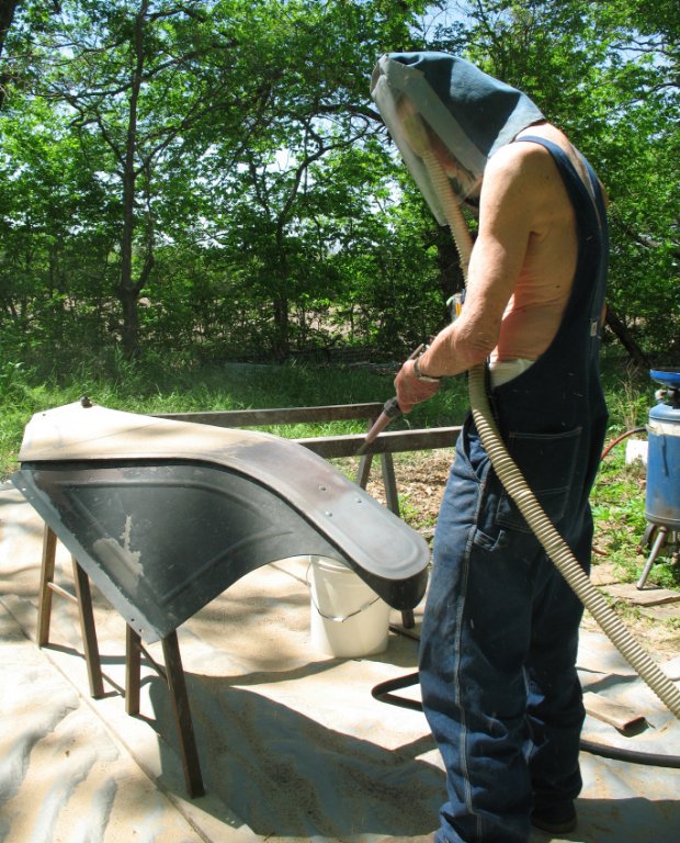 The old lacquer was awfully tough, and it was mighty slow going until I remembered the pneumatic scaler.