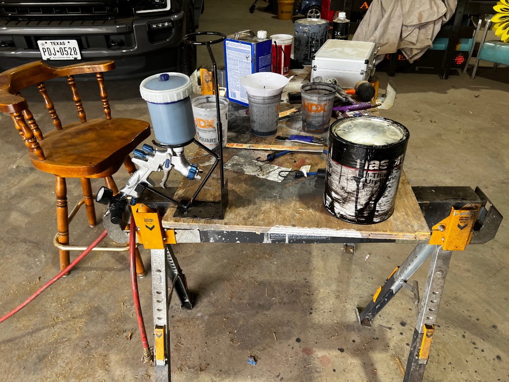 Spent the day prepping and priming the front wheels on the '15 with my 93 yo dad. Today we start painting.